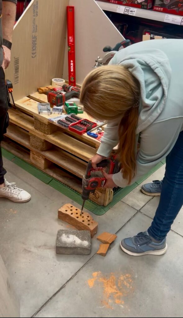 An den Stationen ging es unter anderem um kreatives Upcycling, bei dem aus alten Holzstücken neue Lieblingsstücke entstehen konnten. Eine weitere Station zeigte, wie sich Räume mit Laminat gestalten lassen – funktional, modern und mit einfachen Mitteln selbst umsetzbar. Besonders gefragt waren auch die Werkzeug-Basics: Welcher Bohrer eignet sich für welche Wand? Wie verwendet man einen Akkuschrauber richtig? Und worauf sollte man beim sicheren Arbeiten achten? Welche Sicherheitsaspekte sind beim Arbeiten/Handwerken zu berücksichtigen?