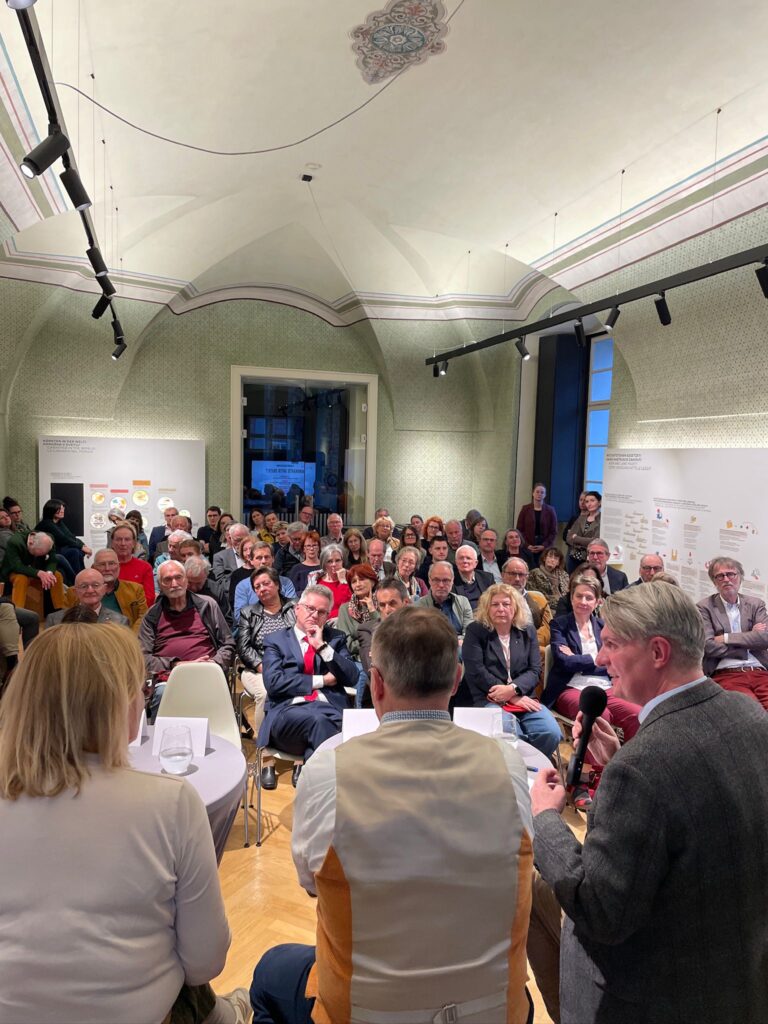 Durch den Abend führte John Evers, Generalsekretär des Verbands Österreichischer Volkshochschulen und Vorsitzender der Österreichischen Gesellschaft für Politische Bildung, der die Diskussion kompetent moderierte und immer wieder neue Perspektiven eröffnete.